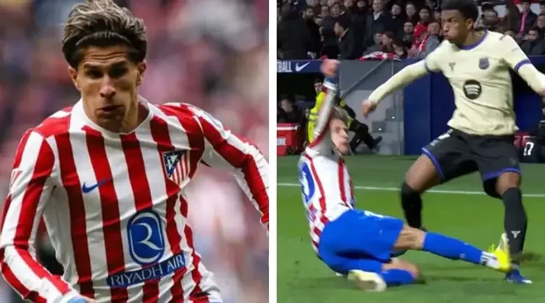 During the second half of the Barcelona match, Atletico Madrid’s Giuliano Simeone made a controversial tackle on Alejandro Balde.
